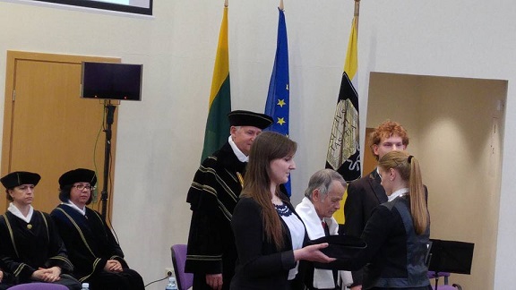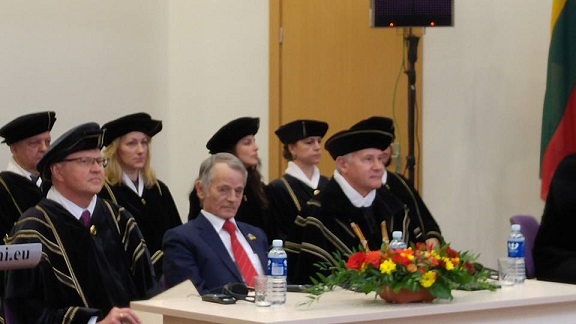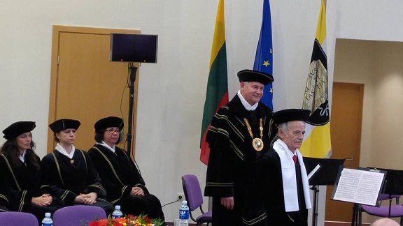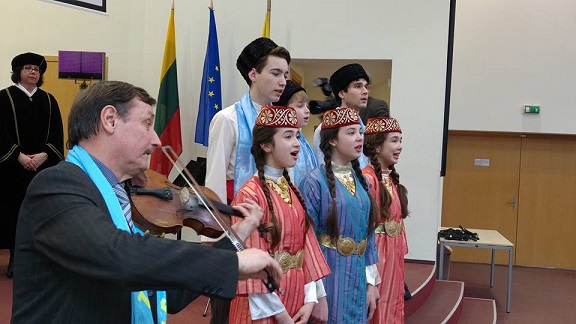 Üniversitedeki tören bir yaylı çalgılar quartetinin verdiği küçük konser ile başladı. Daha sonra “Fahri Doktora” törenine geçildi. Bu ünvanın verilmesi kararı Litvanya Tatar toplumunun lideri Prof. Dr. Adas Jakubauskas’ın önerisiyle üniversitenin Siyaset Bilimleri Bölümü tarafından 25 Mart 2016’da alındı.