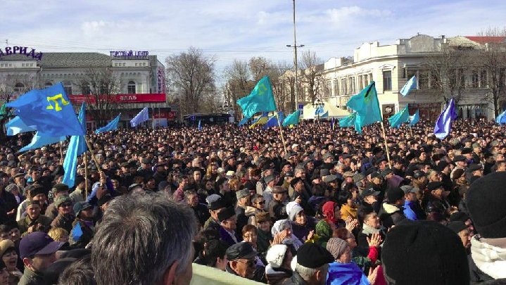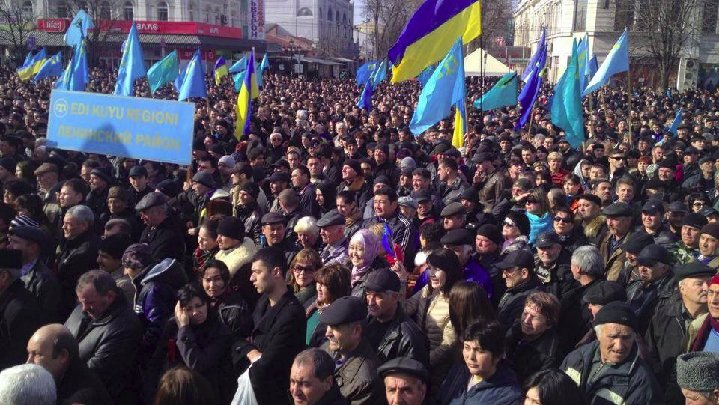 Kırım Tatar Milli Meclisi tarafından Başkent Akmescit’in Lenin Meydanı’nda düzenlenen törenlere Ukrayna’da iktidar karşıtı eylemlerin başlamasından bu yana Kırım’daki en kalabalık gösteri yapıldı.