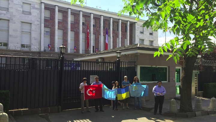Son günlerde çok tartışılan, Fransa’nın Rusya’ya NATO standartlarına uygun Mistral sınıfı savaş gemisi satışı; 14 Temmuz Pazartesi günü derneğimiz tarafından resmi bir mektup ile protesto edilmiştir. Dernek Yönetim Kurulumuz ve Gençlik Komisyonumuzdan oluşan bir grup mektubu Fransız Büyükelçiliğine teslim etmiştir. Mektupta; Fransa devletinin yaptığı bu satışın Birleşmiş Milletler ve NATO prensiplerine aykırı olduğu, bu hareketin dünya barışına zarar vereceği ve Kırım Özerk Cumhuriyeti’ni işgal eden, bununlada yetinmeyip Ukrayna’nın doğusundaki ayrılıkçı hareketlere açık destek sağlayan saldırgan Rusya siyasetine bir destek niteliği taşıyacağı belirtilmiştir.
