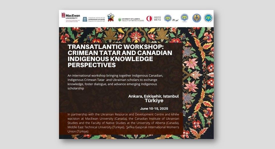 MacEwan Üniversitesi Ukrayna Kaynak ve Geliştirme Merkezi (URDC) ile Kanada Yerli Hakları Girişimler Ofisi, Alberta Üniversitesi Kanada-Ukrayna Çalışmaları Enstitüsü (CIUS) ve Yerli Halklar Çalışmaları Fakültesi (FNS), ODTÜ ile Şefika Gaspıralı Uluslararası Kadın Birliği (Ankara) ortaklığında yeni araştırmaları ve girişimleri desteklemek amacıyla “Kıtalararası Çalıştay: Kırım Tatarları ve Kanada Yerli Halkları Araştırma Perspektifleri ” Türkiye’de düzenlenmektedir.